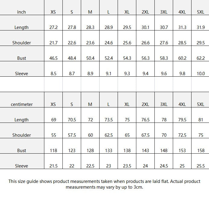 | centimeter | XS | S | M | L | XL | 2XL | 3XL | 4XL | 5XL |